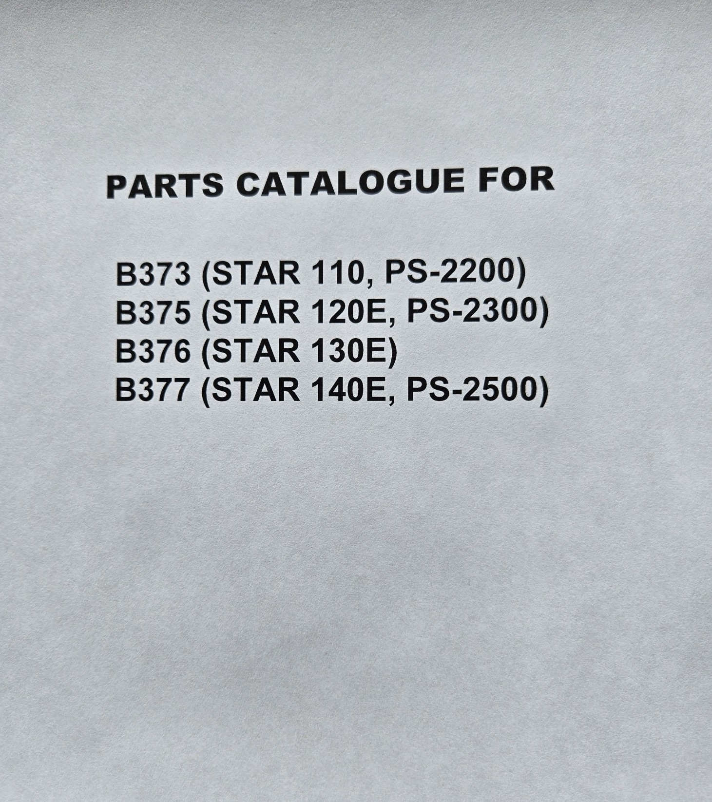 Parts Manual Brother PS2200, 2300, 2500,Star 110, 120E, 130E, 140E, B373, 375, 376, 377 Sewing Machine