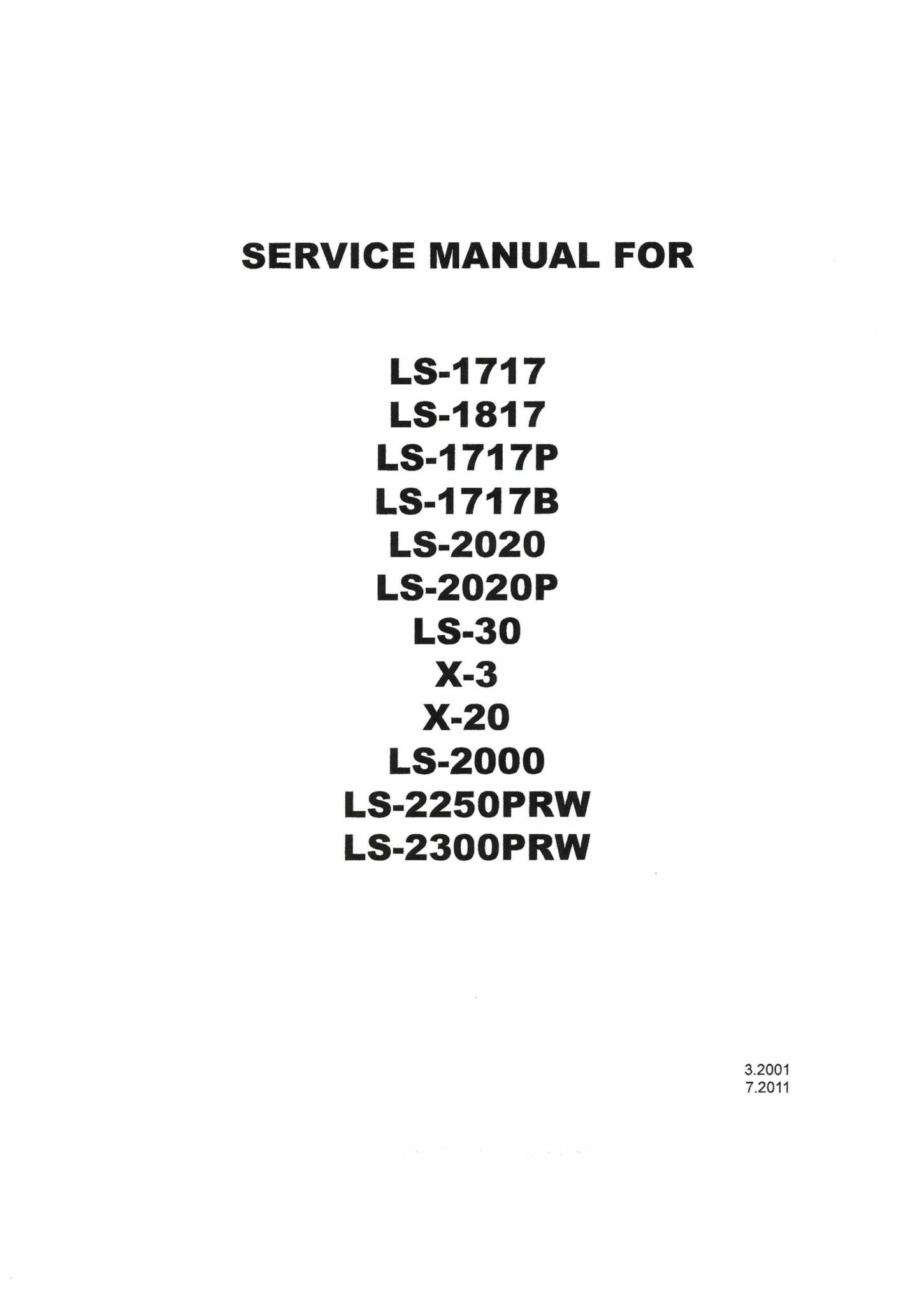 Service Manual Brother LS 1717, 1817, 2020, 2000, 2250PRW, 2300PRW, LS30,X3, X2020LEINV-20