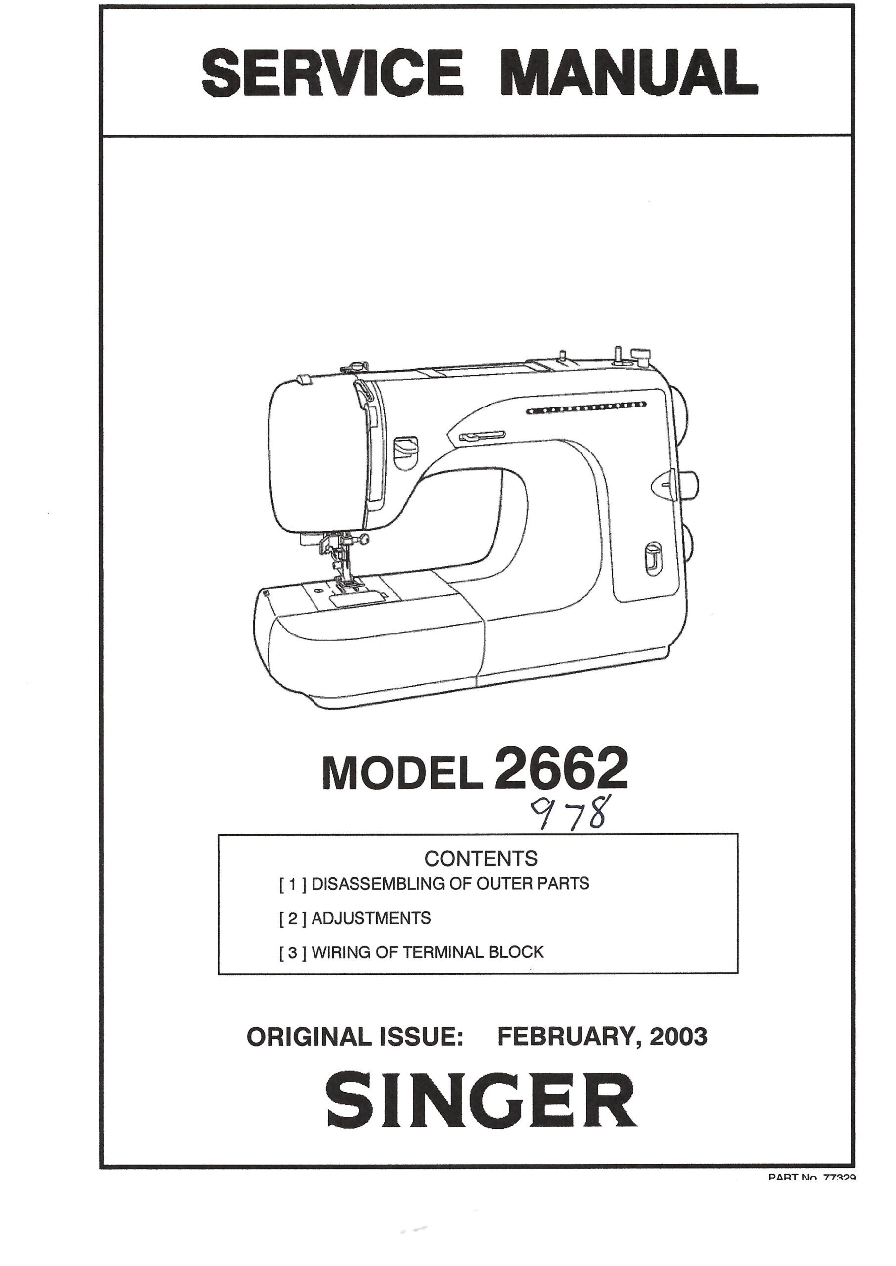 Service Manual Singer 2662, 978 Sewing Machine