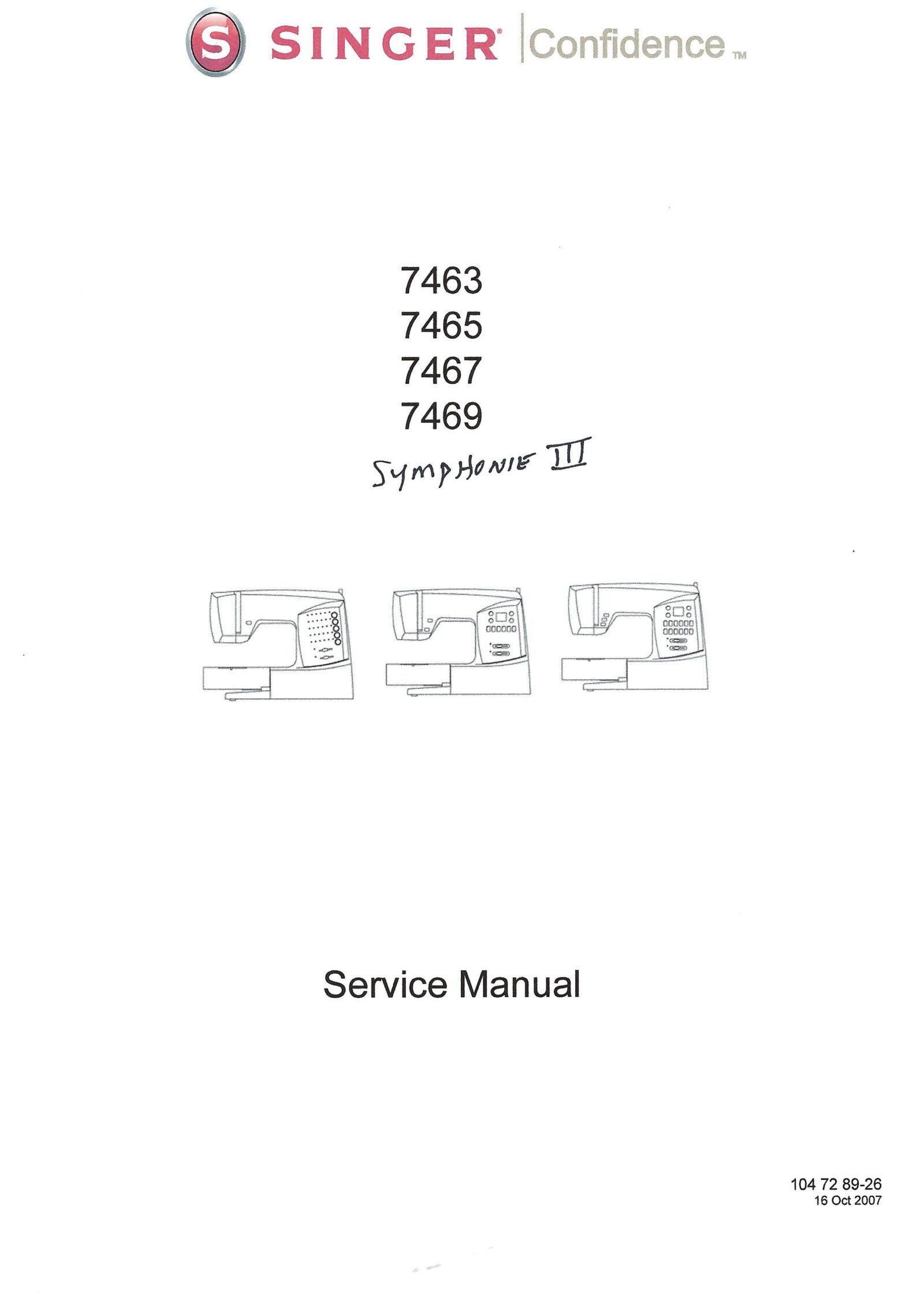 Service Manual Singer Confidence 7400 Series, Symphonie III Sewing Machine